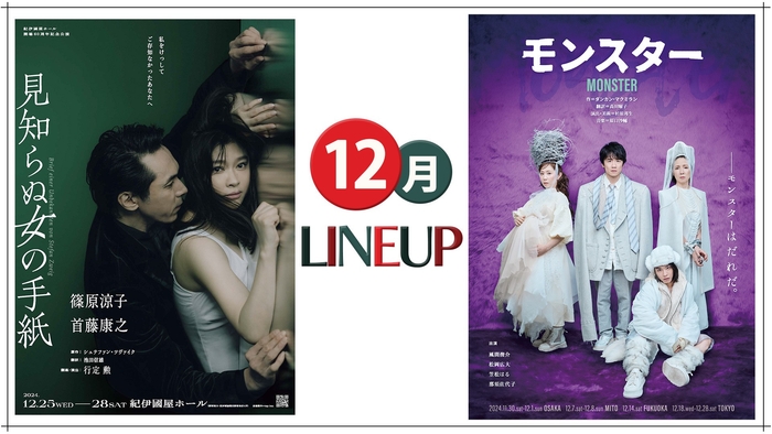 紀伊國屋ホール開場60周年記念公演『見知らぬ女の手紙』(新宿)、舞台『モンスター MONSTER』(渋谷)をはじめ、話題の12月公演でチラシをお配りいただくことができます。