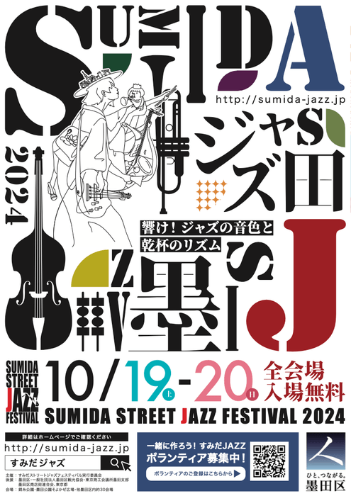 すみだストリートジャズフェスティバル実行委員会(実行委員長:多賀 健太郎)が、錦糸公園や隅田公園そよ風ひろばを中心に墨田区内全27会場で、いよいよ今週末の2024年10月19日(土)・20日(日)に『すみだストリートジャズフェスティバル』を全会場入場無料で開催します。