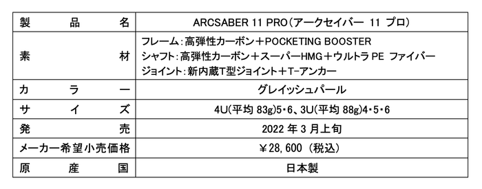 本製品は新設計・新構造採用により、従来品「ARCSABER 11」の特徴である球持ちと打球感の良さをさらに進化させ、より精密にコースを狙えるコントロール性能を実現しました。