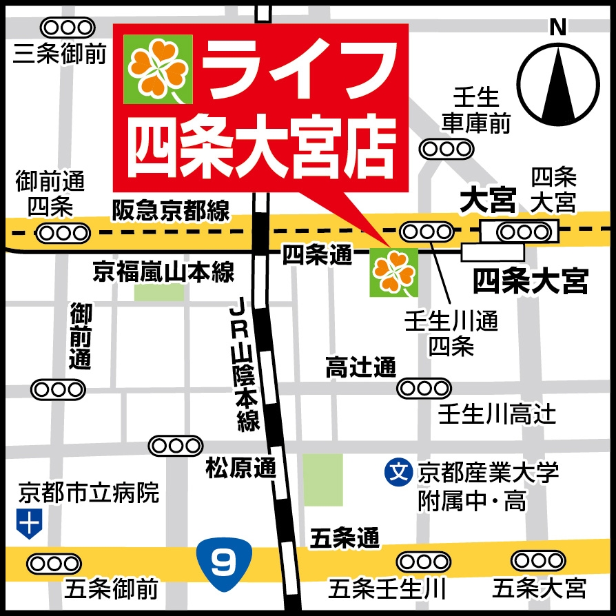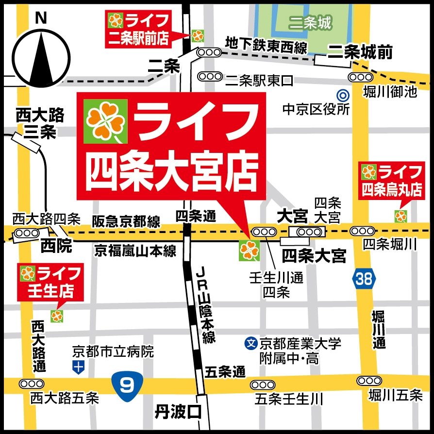 <店 名>「ライフ四条大宮(しじょうおおみや)店」