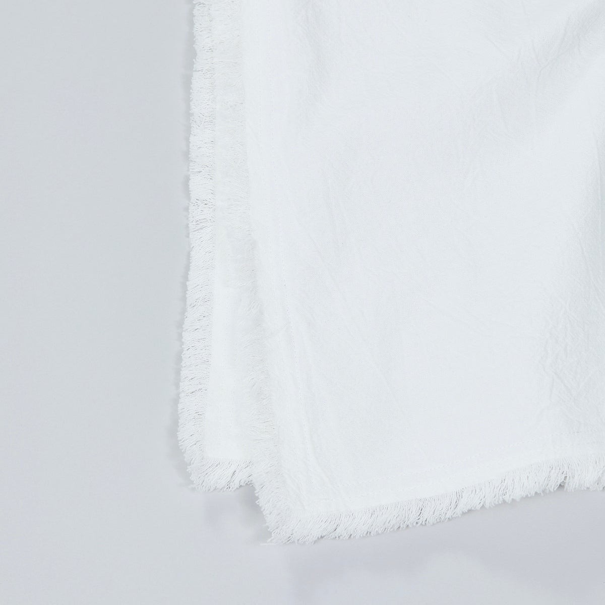 リネンを贅沢に配合し、丁寧に施されたシワ加工が、広げた瞬間から自然な風合いとエアリー感を引き立てます。リラックスした空間を演出しながら、上質なひとときを感じさせます。