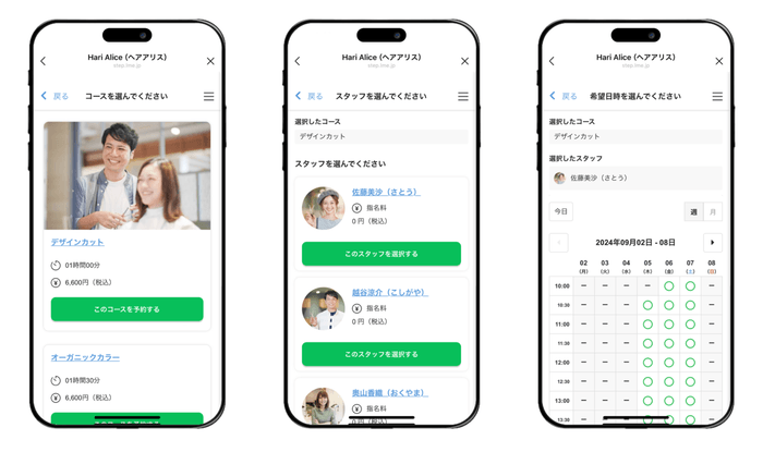 サロン・面談予約は、LINE上で予約から決済まで完結できる予約管理機能です。