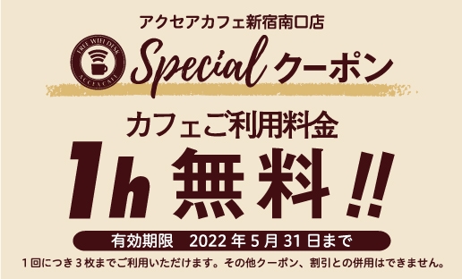 アクセアカフェ新宿南口店 1時間無料クーポン!