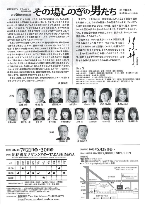 劇団東京ヴォードヴィルショー 第74回公演 創立50周年記念公演