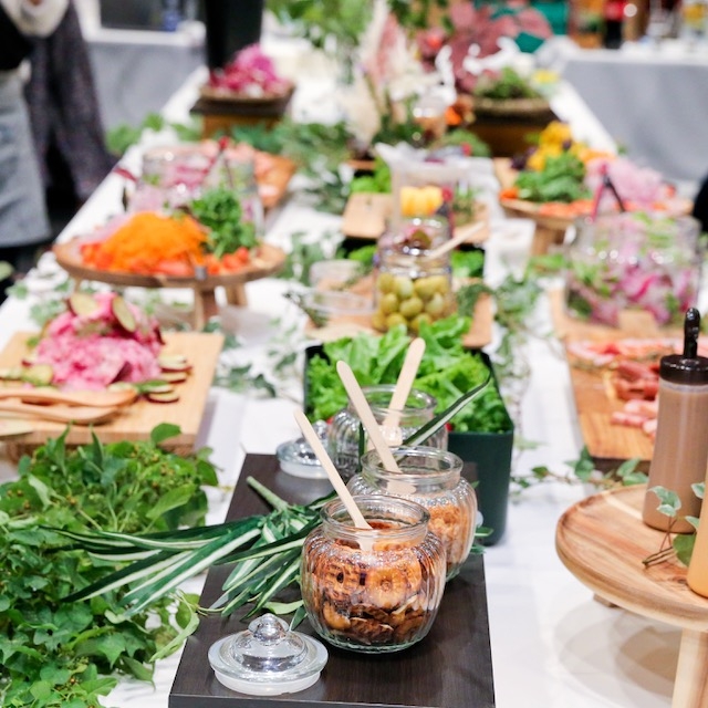 コミュニケーション効果の向上に役立つのが、「食べニュケーション」です。お酒を飲めないメンバーがいても、おいしい料理を共有しながら気兼ねなく話せる「食べニュケーション」は、同じ時間を共有し、相手の人柄や抱えている問題を知り、絆をより深めるきっかけにも。Green Diningでは、社内イベントをお考えの企業様向けに、華やかで盛り上がる料理を取り入れることにより参加者の笑顔があふれるサービスを目指してご提案を作ります。