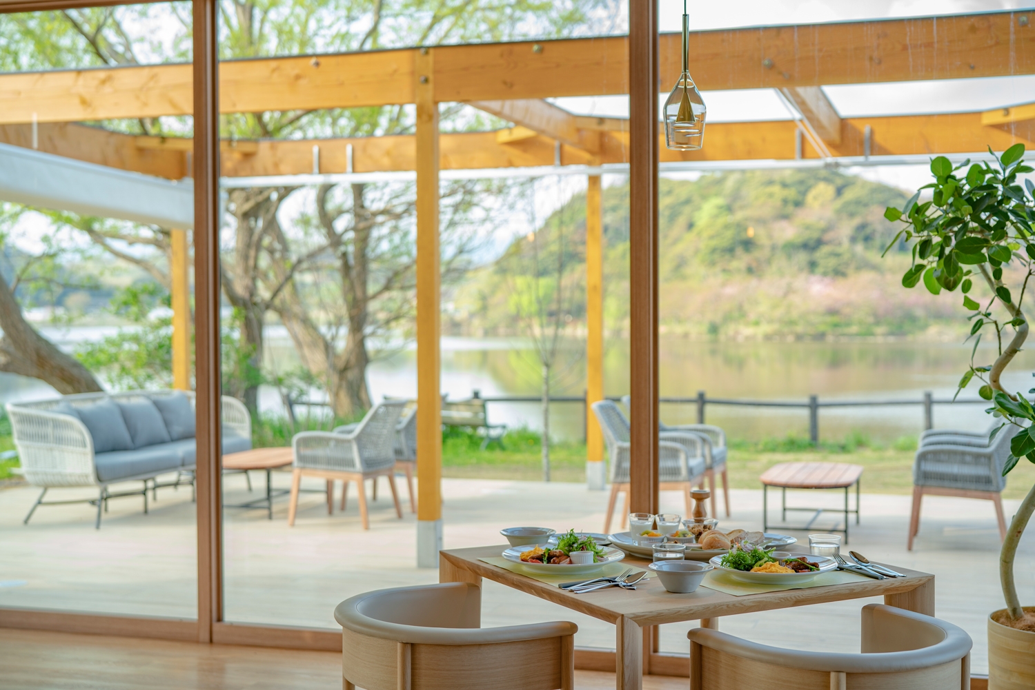京都府最大の湖を望む絶景と、ゲストが自由に過ごせるガーデンテラスなど、飾らない居心地のいい空間が特徴です。