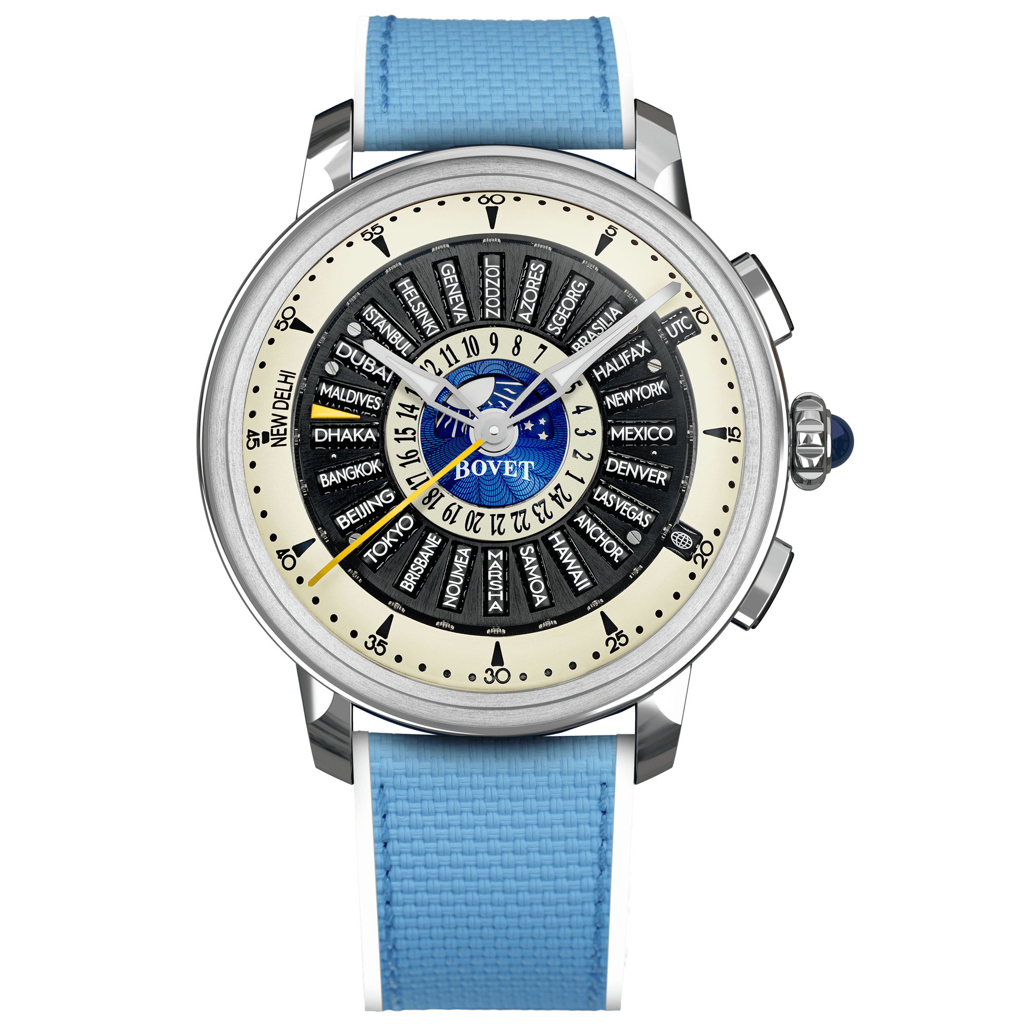 時計の歴史における大きな課題のひとつが サマータイム(DST/Daylight Saving Time)問題 でした。従来のワールドタイム機構では、世界120カ国の時間を正しく表示できず、70カ国以上が採用するサマータイムにも対応できないという根本的な問題がありました。この未解決の課題に対し、ボヴェはリサイタル 28 プロウエス 1 (GPHG2024でメカニカル・エクセプション賞を受賞)、そして、今回 受賞したリサイタル 30によって革新的な解決策を提示しました。2024年にリサイタル28で開発されたローラー式ワールドタイム機構をさらに進化させ、年間を通して世界中の時刻を正確に表示する初のワールドタイムとして設計されています。