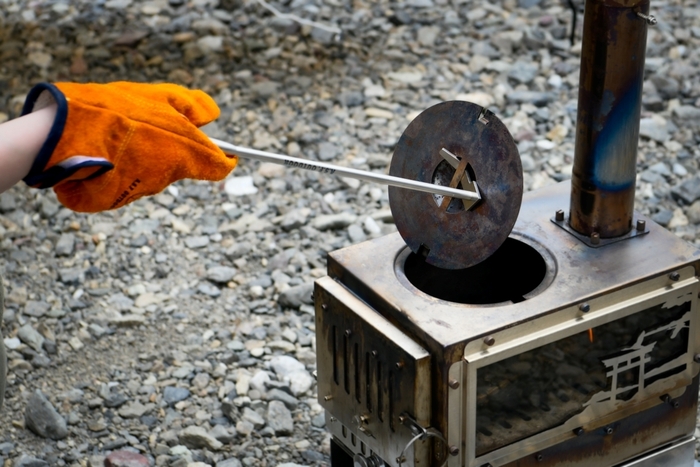耐熱グローブ、防炎シート、灰かき棒、火ばさみ、