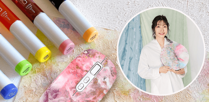このマウスを通じて、多くの方にアルコールインクアートの魅力を感じ取っていただき、おしゃれアイテムを使って働く時のモチベーションアップに繋がることを心より願っております。 ― By sayakaさん