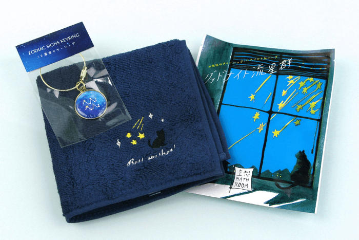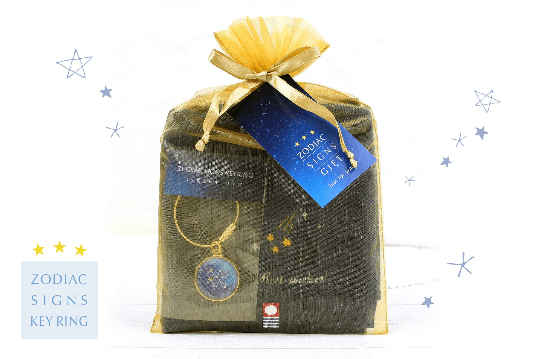 ■セット内容:今治タオルハンカチ1枚、星座キーリング1個、入浴剤1包、ラッピングつき