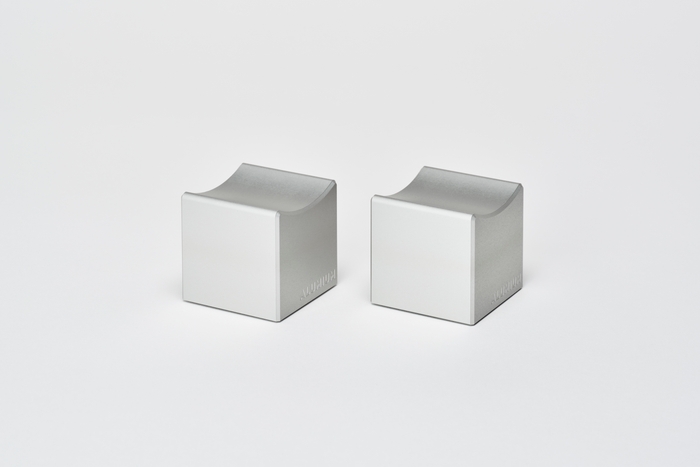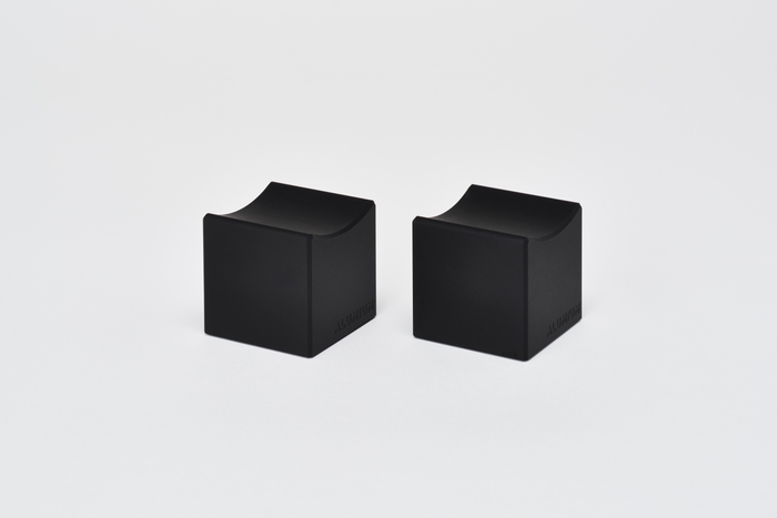 アルミの塊を削り出しているので、かなり高級感があります。底面にはコルクシートを貼り込んでいるので、滑ることも、床面を傷つけることもありません。