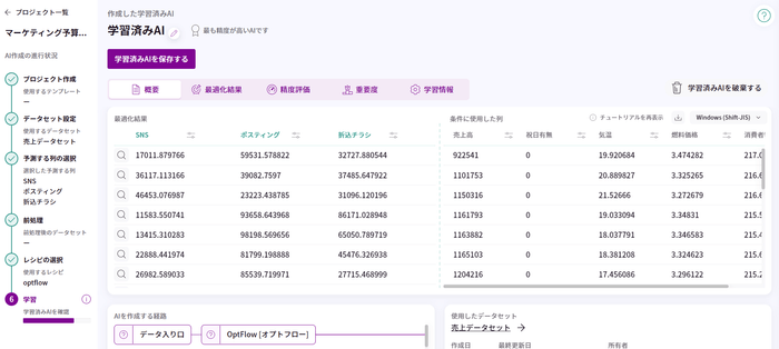 学習が終わると、AIが予測した最適化結果を画面上で確認することができます。