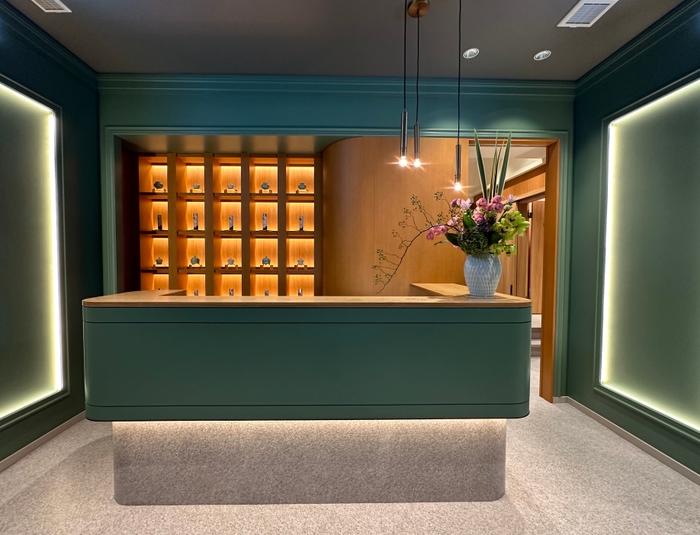 ミス・パリは、グリーン、ダスティピンク、ホワイトを基調とし、和の要素を取り入れて、京都らしい新鮮な雰囲気のサロンになっています。