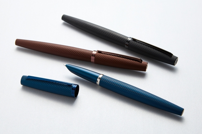 VIPER(バイパー)は、ギロシェパターンの彫刻だけでなく、アノダイズ加工のメタリックな風合いの仕上げとも好相性となっており、流線型のフォルムはボディ、グリップ、そして精緻に設計され滑らかな書き味を発揮するフーデッドニブへと一体感のある曲線を描きます。従来使用していた14金ペン先(エクセレンスA2、アエロなど)をステンレスにすることで価格を抑え、初めての万年筆としても最適なアイテム。機械で代えることの出来ない熟練による手作業で作り上げられたVIPERは、3色から自分のスタイルに合わせて選択できます。