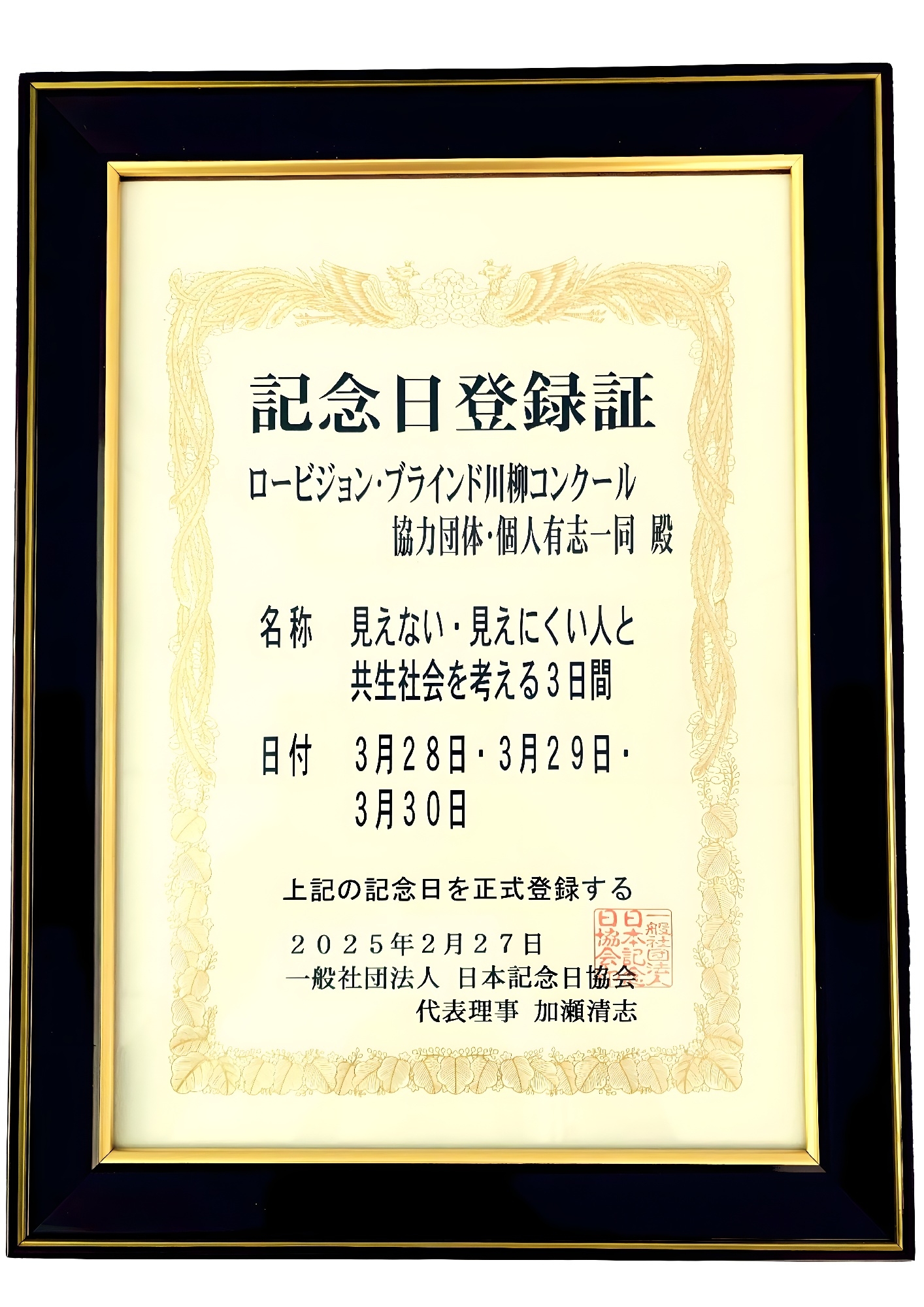 今回は、記念日初日の3月28日には「第七回ロービジョン・ブラインド川柳コンクール」の最優秀賞他各賞、入選100作品を発表するほか、60を超えるコンクールの協力団体にもそれぞれの活動紹介をすることを呼び掛けています。