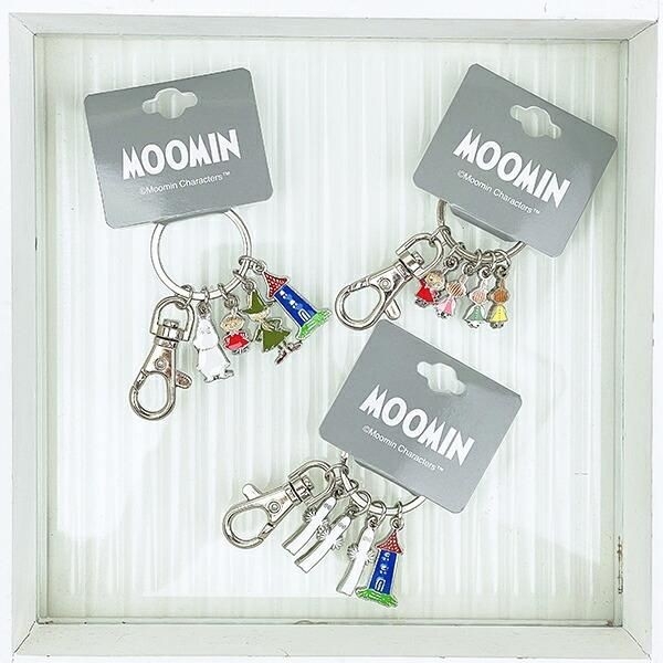 ニョロニョロ3体とお家のチャームがチャーミングです。指先ほどの小さなメタルチャームなのにのにムーミンの世界観がこれだけでしっかりと表現されているような気がします。ナスカン付きだから、バッグに付けやすいです。サイズ:9.5cm×3cm×0cm 素材:亜鉛合金