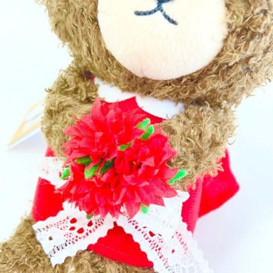 赤い花束をもったジャッキーは、お洋服も赤いワンピ♪