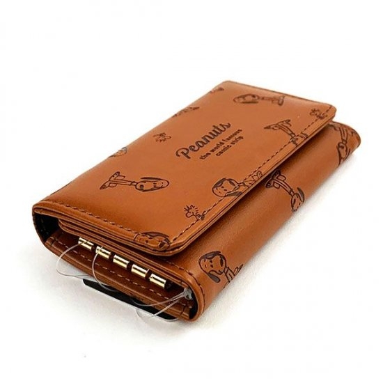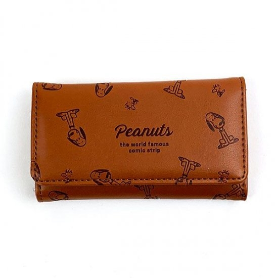 まずはスヌーピーとウッドストックの柄が楽しいキャメルのキーケース。
