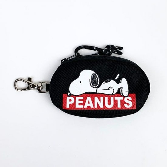 寝そべるスヌーピーと赤いロゴが目を引くこちら。ナスカン付きなので鞄などにぶらさげて紛失を防ぎましょう。