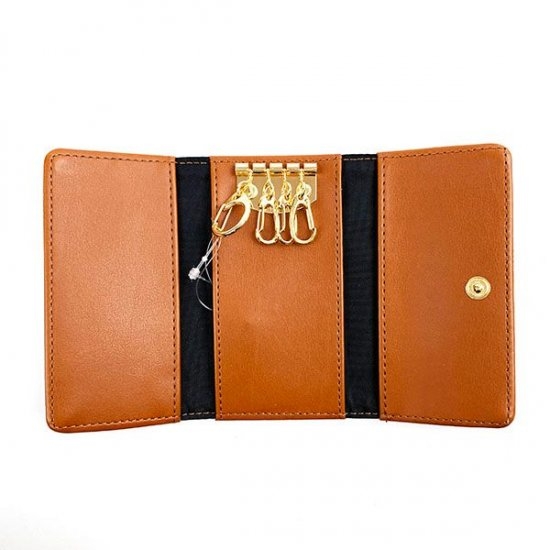 キャメルのケースに映えるゴールドのキーリングは4つ。さらにカードも2枚収納可能なので、ちょっとしたお買い物ならこのキーケースだけで行けちゃいそう♪