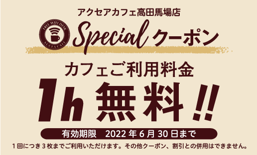 アクセアカフェ高田馬場店 1時間無料クーポン!