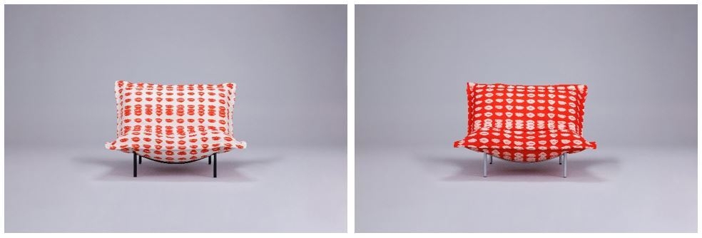 大好評の「とんだ林蘭×リーン・ロゼ」コラボ! 第2弾は、《見る距離によって印象が変わるソファ》 30周年迎えるソファ「ロゼカラン」から新モデル登場! 約500個のキスマークをあしらった『KISSSS』発売