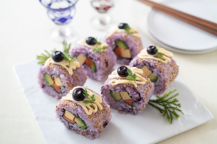 きれいな紫色・愛らしい丸い形のブルーベリーを料理に使うと、栄養価が高いだけではなく、見た目もかわいく華やかになります。年末年始の食卓にも彩りを与えてくれるでしょう。今回は、ブルーベリーの甘酸っぱい風味と合う「和」のレシピをご紹介します。冷凍ブルーベリーを使うことで、手軽に材料をそろえることができ、さらに冷凍によってブルーベリーの細胞が壊れやすい状態のため、紫色もよりきれいに発色します。