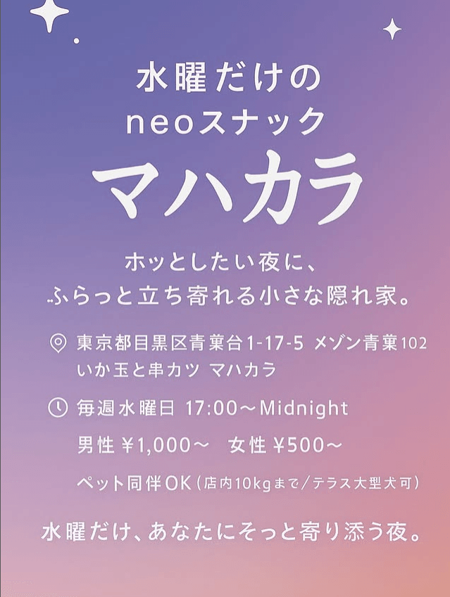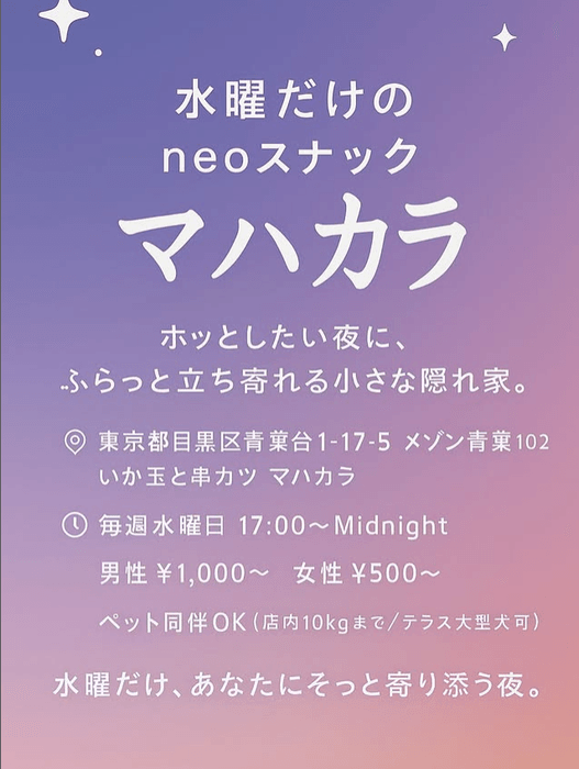 店舗名 水曜だけのneoスナック マハカラ