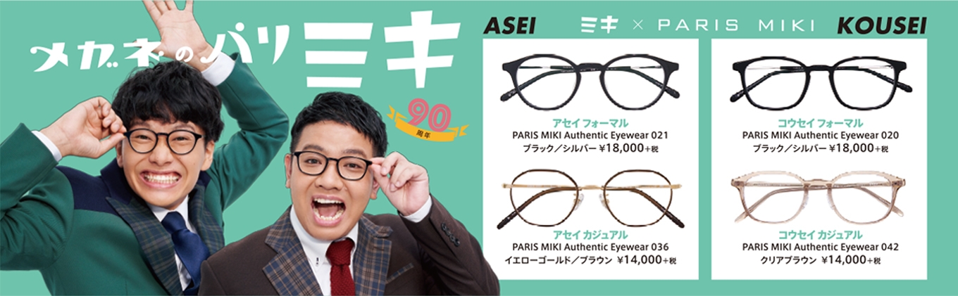 兄弟漫才師「ミキ」と共同開発『ミキコラボレーションモデル』メガネ発売中!コラボから動画撮影風景まで、詳細は特設ページにて公開しております。※掲載価格はフレームのみの価格となります。