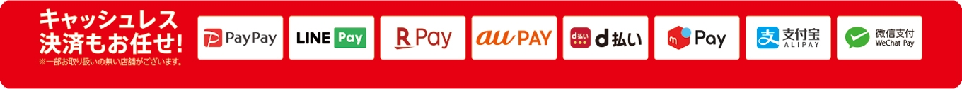 スマホアプリのQRコード決済をはじめ、便利なキャッシュレス決済もご利用可能です!※一部取り扱いのない店舗がございます。