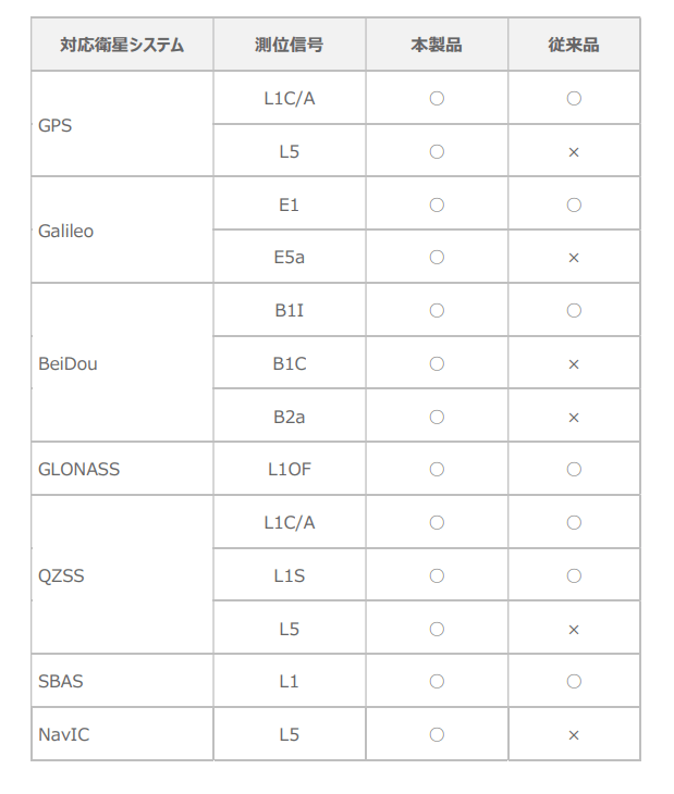 受信可能衛星 :GPS/QZSS/GLONASS/SBAS/BeiDou/NavIC/Galileo