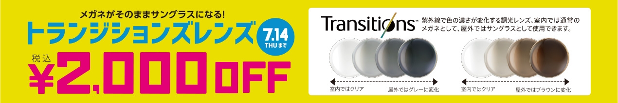 ■トランジションズ レンズ 税込2,000円OFF! 7月14日(木)まで