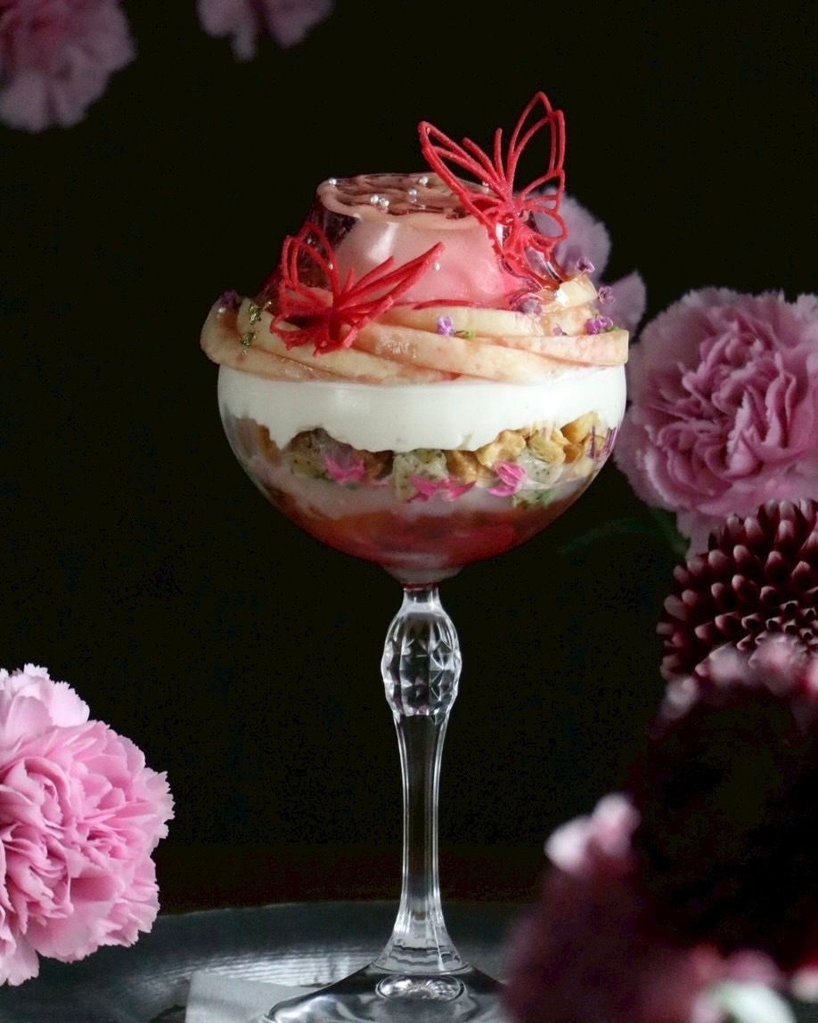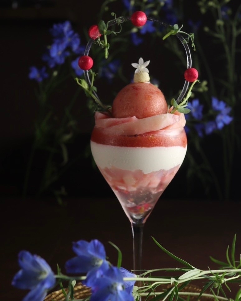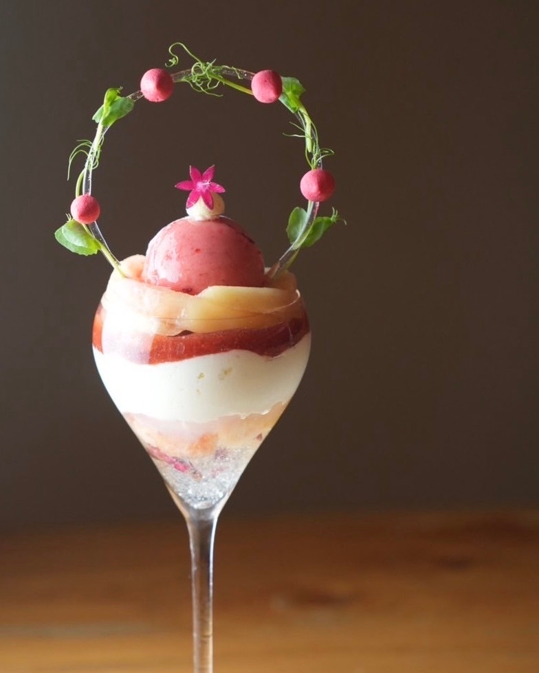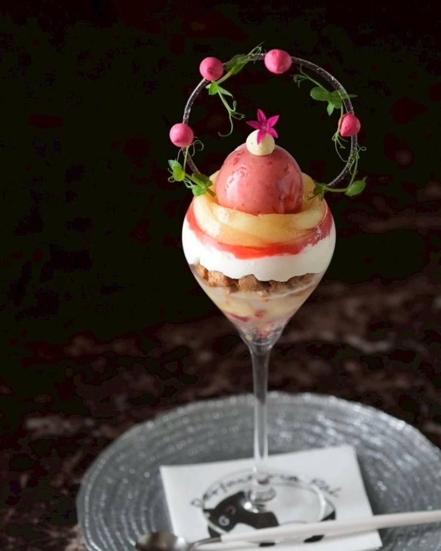 甘さの強弱、酸味の強弱、苦み、パフェの起承転結、アイスやパフェのそれぞれのパーツの相性を大切に作っています。味の変化もお楽しみください。