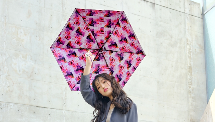 傘をさして見上げるとそこはまるで万華鏡のよう。煌びやかなカラーと花柄プリントが視線を集めます。収納ケースにも同じ柄をプリント。周りと被らない”ちょっとクセのある傘”で自分らしさを表現しよう。