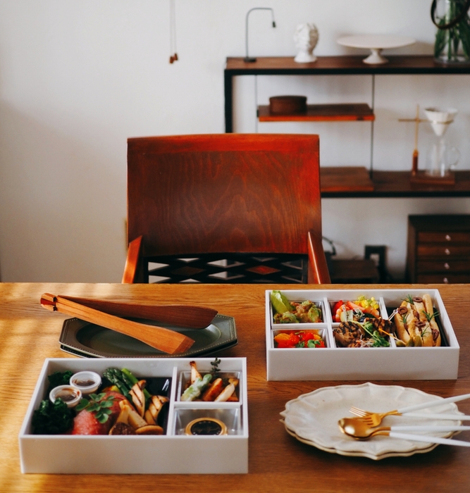 メインのお料理では結婚式でも人気の「しあわせ絆牛」を使用。黒毛和牛の特徴であるサシと脂質にくわえ、ホルスタインの赤身のうまさをかねそなえた、ハイブリッドな牛肉をフォアグラと組み合わせています。メイン含む前菜やバケット等8品をテイクアウトボックスでご用意。お誕生日や還暦祝いなど、家族で集まる特別な記念日のお祝いや、お土産にも最適のこちらのボックスは、ぜひお気に入りのお皿に盛りつけてお楽しみください。