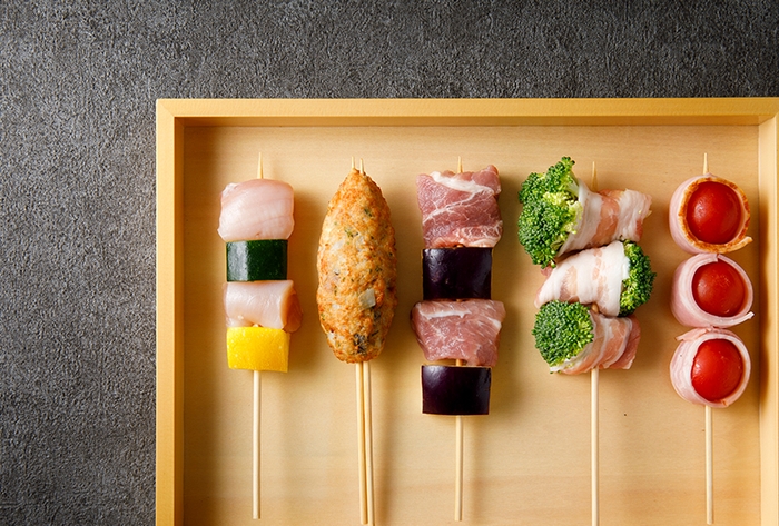 地域密着の安全安心な野菜をはじめ、新鮮な野菜と肉を一緒に楽しめるギルティフリーな串を、贅沢な備長炭の炭火焼きで楽しめる。