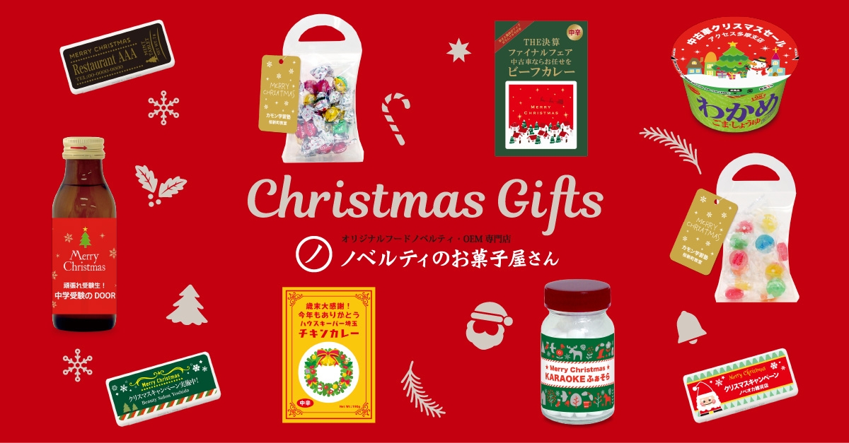 クリスマスが近づく中、ノベルティのお菓子屋さんは今年も特別なプレゼントをご用意しました。お客様オリジナルのデザインを施したクリスマス限定アイテムが、今年も多数登場。これらの特別なギフトは、イベントでのお配りやプレゼントとして最適で、お菓子以外のアイテムもご用意しています。
