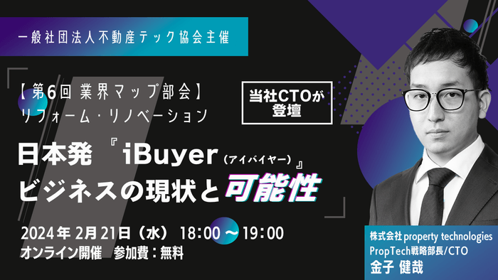 テクノロジーで気軽な住み替えをサポートする株式会社property technologies(以下「当社」)のPropTech戦略部長/CTO 金子 健哉が、2024年2月21日(水)に開催される一般社団法人不動産テック協会(以下「不動産テック協会」)主催のイベント『第6回業界マップ部会』に登壇します。