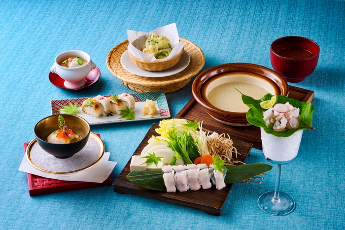 淡路島西海岸にある、劇場&レストラン「青海波-SEIKAIHA-」内にある和食レストラン「青の舎」と、 小学校をリノベーションした複合観光施設「のじまスコーラ」内にある「リストランテ・スコーラ」では、旬の淡路島産の鱧を使った夏限定のコース料理を7月1日(土)より提供開始します。