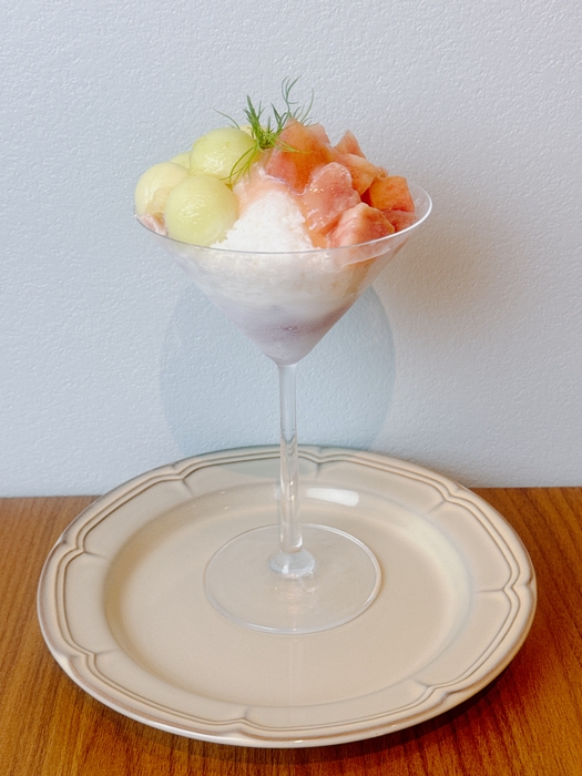 ハワイアンテイストを楽しめるパフェ氷、ピーチメロンとハーブ(ディル)