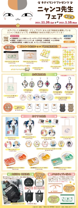 株式会社キデイランド(代表取締役社長:間宵 薫、本部:東京都千代田区)は、キデイランド11店舗と公式通販サイトにて、夏目友人帳『ニャンコ先生ショップ』フェアを2021年11月20日(土)から開催中。