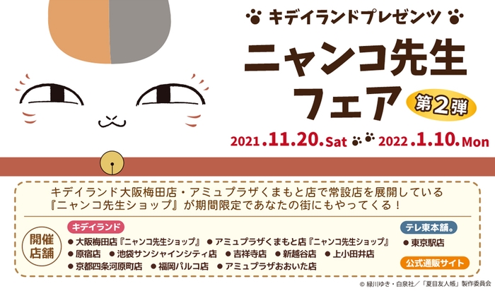 【絶賛開催中】2021年11月20日(土)~2022年1月10日(月・祝)開催!夏目友人帳 ニャンコ先生フェア 第2弾 キデイランド11店舗と公式通販サイト
