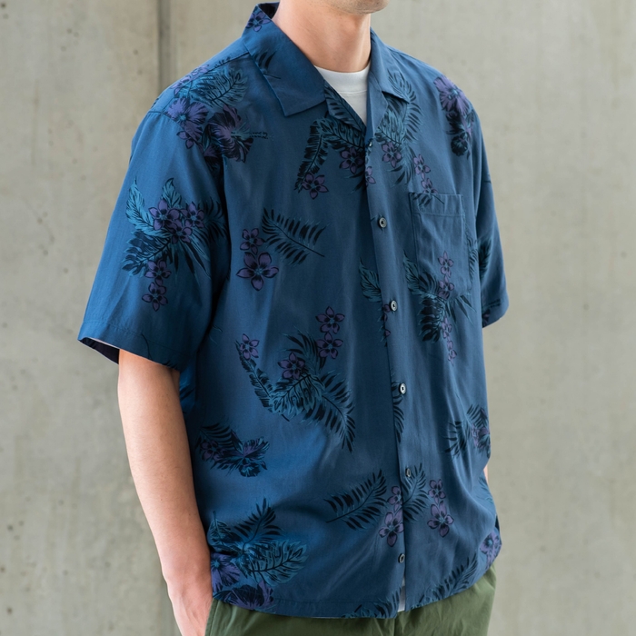 SHIPS anyオリジナルの色柄で展開するアロハシャツ。一般的なアロハシャツとは異なり、シックで都会的なデザインで、ショーツだけではなく、イージーパンツやオーバーサイズパンツを合わせてコーディネートを楽しみいただけます。ややゆったりとしたリラックスフィットで、一枚で着るのはもちろん、羽織りとしても使えます。滑らかで心地良いタッチのレーヨン素材を使用し、ウォッシャブル可能なので夏でも快適に過ごせます。