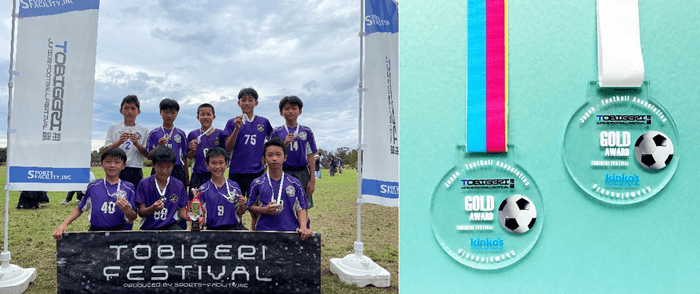 スポーツファシリティは、サッカーをはじめスポーツする子供たちの運動環境の整備、技術の発展を支援するためスポーツクラブのコンサルティング、各種イベントの開催を通じスポーツの力でより良い社会づくりの実現のために活動しています。2012年に地域のサッカークラブ運営から始まった取組みは、市外、県外、全国と範囲を徐々に広げ、児童サッカーの祭典となる“TOBIGERI FESTIVAL”の開催にまで広がりを見せ、今では全国大会優勝といった子供たちの“夢”をつくっています。当社は、かねてからサステイナブルな社会の実現に向け知育支援とアップサイクル品の開発に力を入れており、スポーツファシリティが企画するイベントへアップサイクル品の提供をすることにいたしました。これからも様々なスポーツイベントにメダルを提供することで、新型コロナで運動する場が制限され、スポーツ協会が主催する大会の中止が相次ぐ中、頑張る子供たちを少しでも応援できればと考えています。