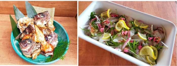 フェア期間中には、お刺身コーナーに「桜鯛の刺身」、「刺身の湯霜造り」を並べ、二つの異なる食感で食べ比べをお楽しみいただけます。また桜鯛の代表的なメニューである塩焼きは、今回のフェアでは「桜鯛カマの塩焼き」としてご用意いたします。また食べ放題の箸休めでは欠かせないさっぱりとしたお料理としましては「桜鯛のマリネ」を、その他「桜鯛のあら」を使用した旨味たっぷりの「あら汁」を日替わりにてビュッフェ台に並べます。桜鯛と言えば一般的に、産卵を控えた真鯛について呼び、栄養を十分に蓄えたこの時期の真鯛は特に美味しいとされています。季節によって異なる味わいの真鯛の美味しさを、ぜひご堪能ください。