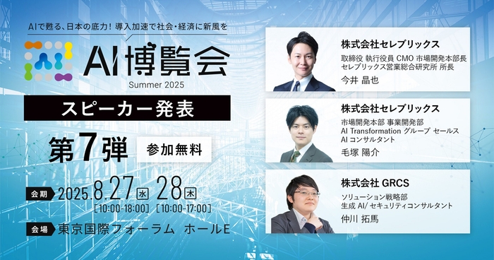 【AI博覧会Summer2025】第7弾スピーカー3名を発表!活用事例から学ぶ、生成AI時代における営業戦略と生成AI活用の攻めと守りの最前線