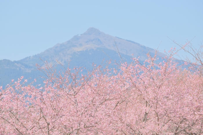 いばらきフラワーパークでは、2月下旬頃から本州一の早咲きの桜である、河津桜約250本が春を先取りするように「さくらの丘」エリアを彩ります。筑波山を借景に里山を濃いピンクに染める姿が魅力です。さらに3月下旬のソメイヨシノを皮切りに、ヤエザクラ、ヤマザクラ、オオシマザクラと、美しい桜のリレーが楽しめます。