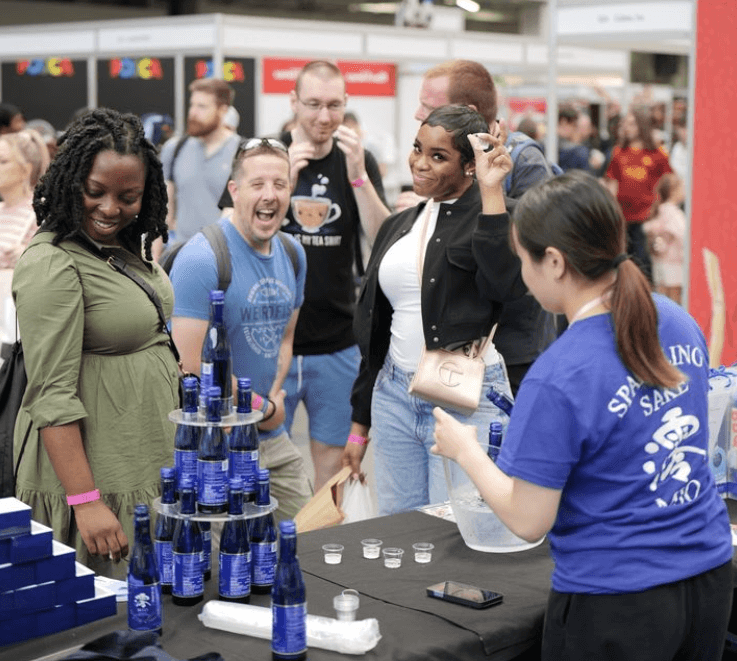 英国においてスパークリング日本酒「澪」は、日本食レストランなどで男女を問わず日本文化に好意的な若い人々に楽しまれています。「澪」は初めて飲まれる方にも、飲みやすくおいしいと評判で、着実にファンを増やしています。そのような中、今年も英国最大規模の日本文化イベント「HYPER JAPAN 2024」に「澪」試飲販売ブースの「MIO」ステーションを出店。3日間のイベントで4,000本以上販売し、日本文化に興味を持つコアファンの層を広げています。