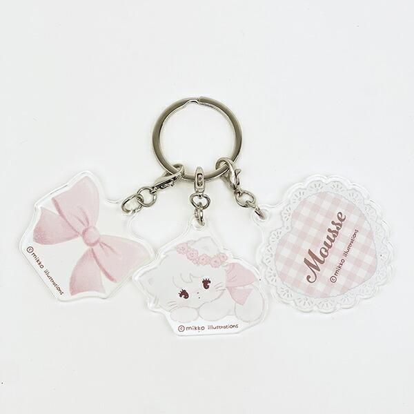 こちらはLil ala mode(リル アラモード)のひとり、子ねこのムースの3連アクリルキーホルダーです。