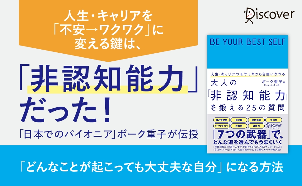 非認知能力育成のパイオニア ボーク重子さん初の大人向けコーチング本『人生・キャリアのモヤモヤから自由になれる 大人の「非認知能力」を鍛える25の質問』(ディスカヴァー・トゥエンティワン)刊行
